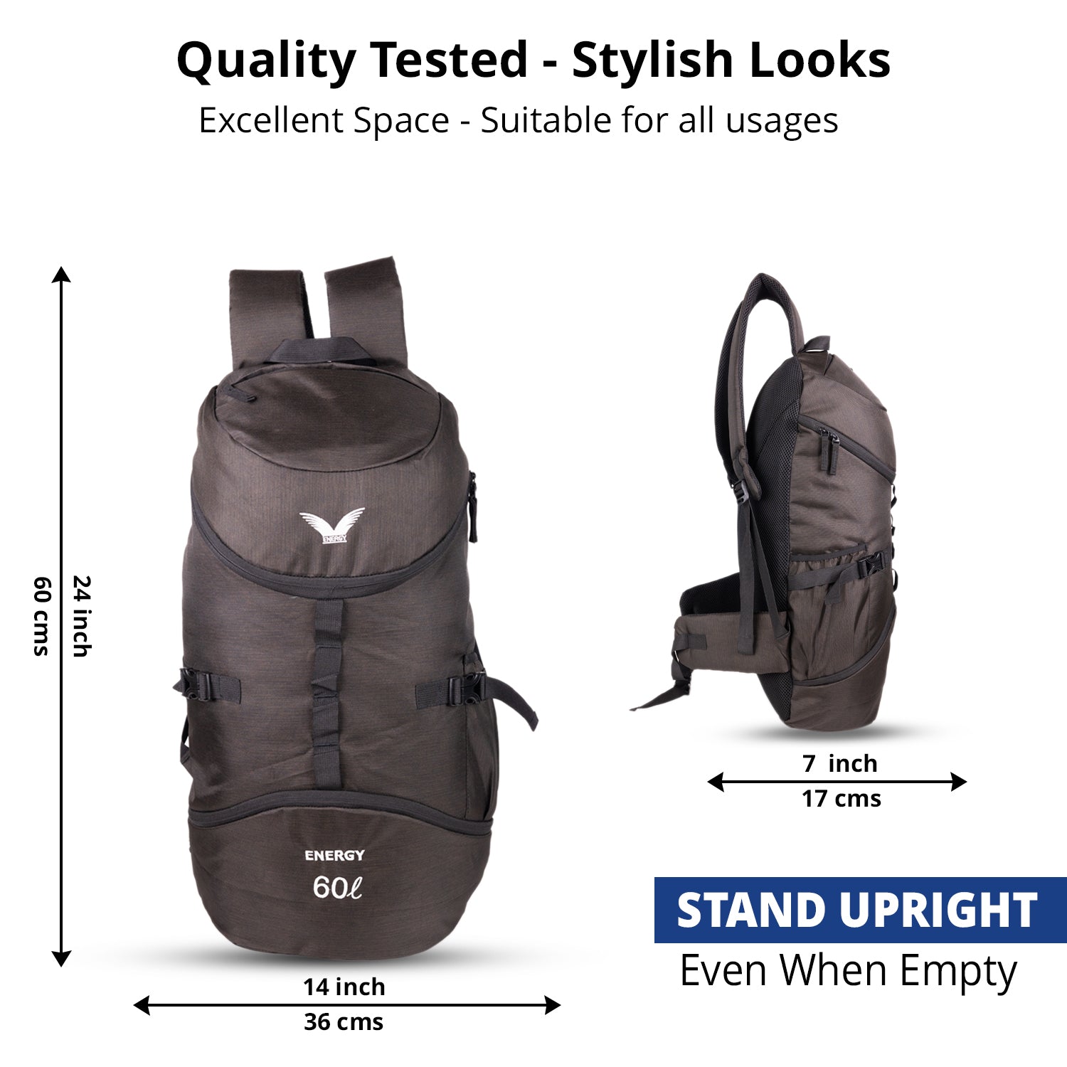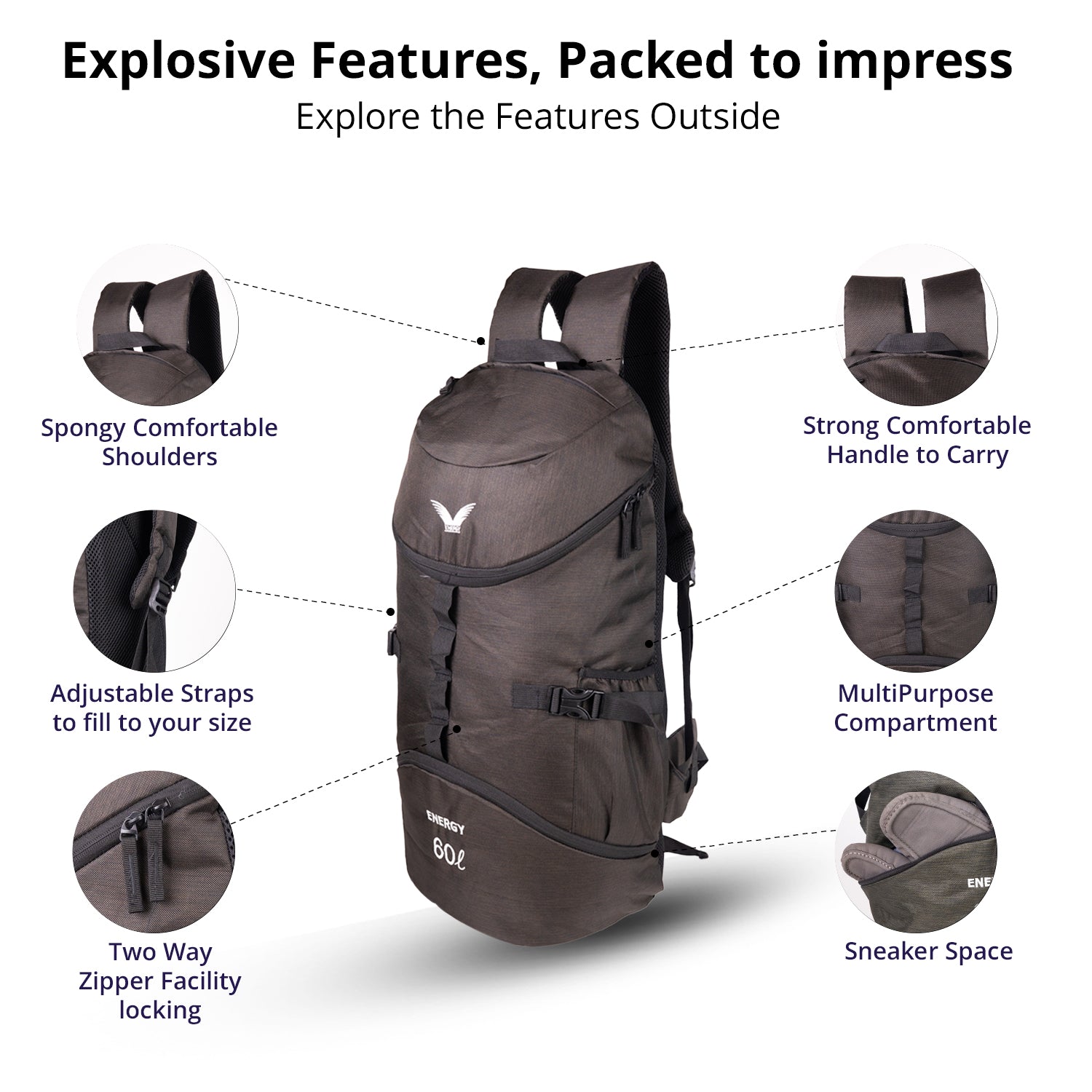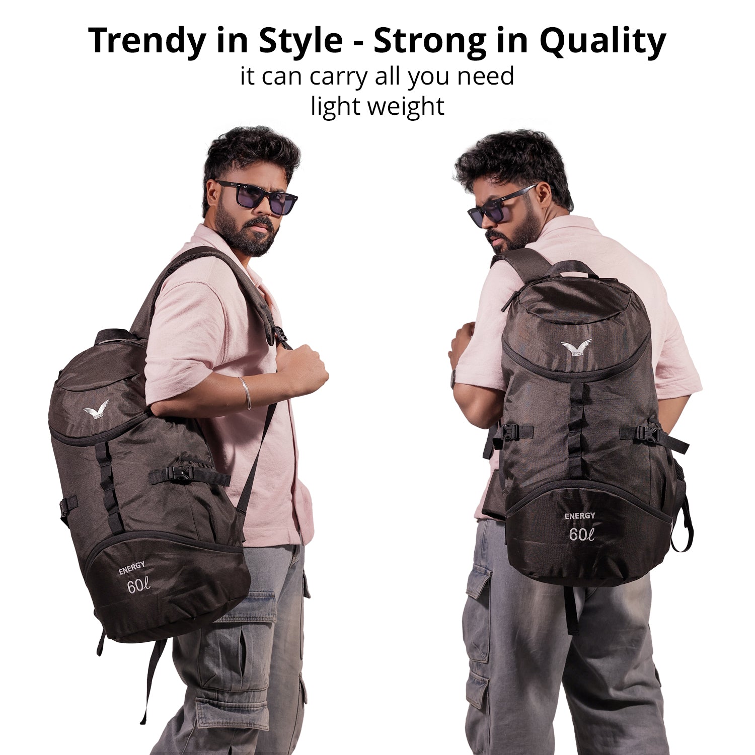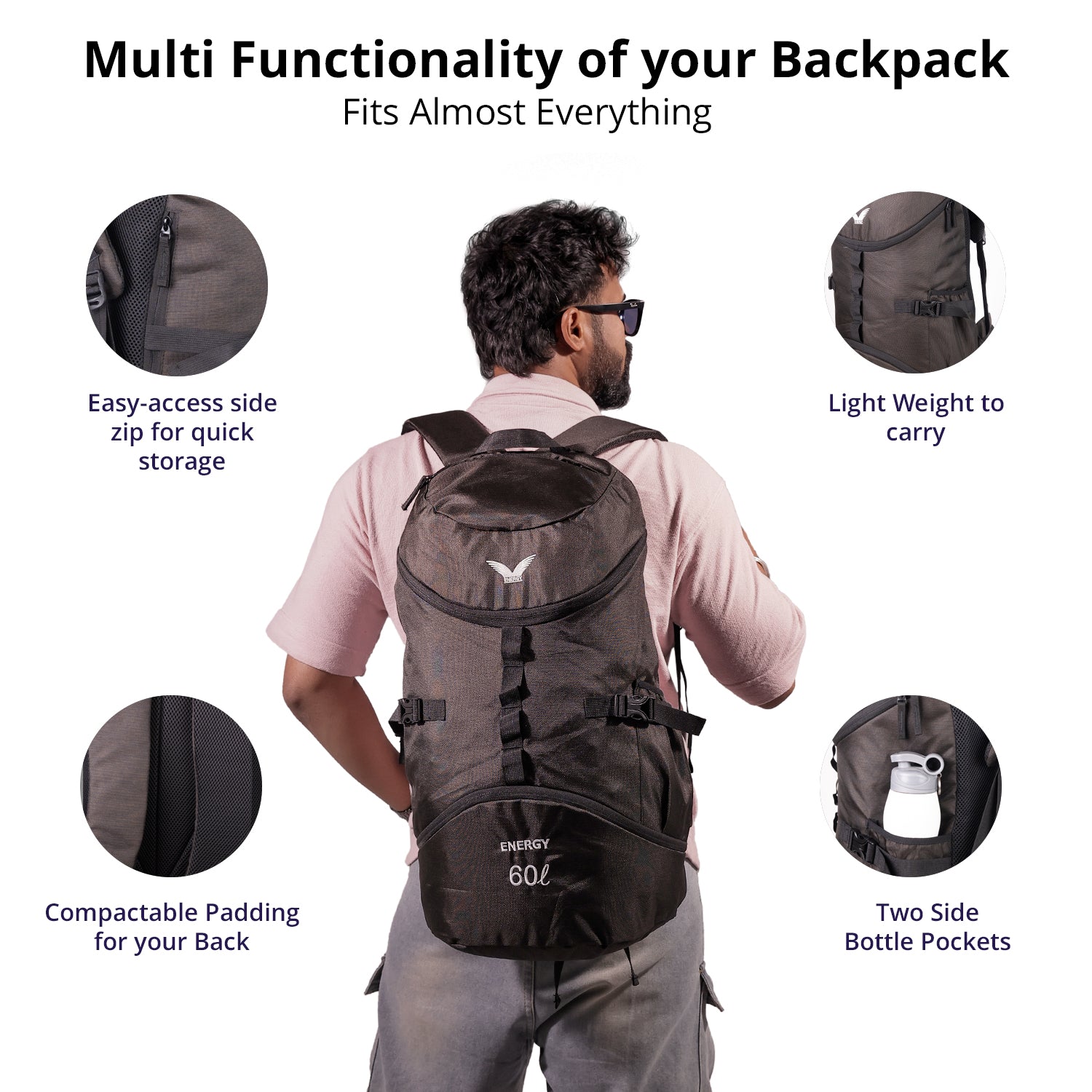 60L Spacious Capacity: Perfect for trekking, camping, hiking, or long travel journeys.