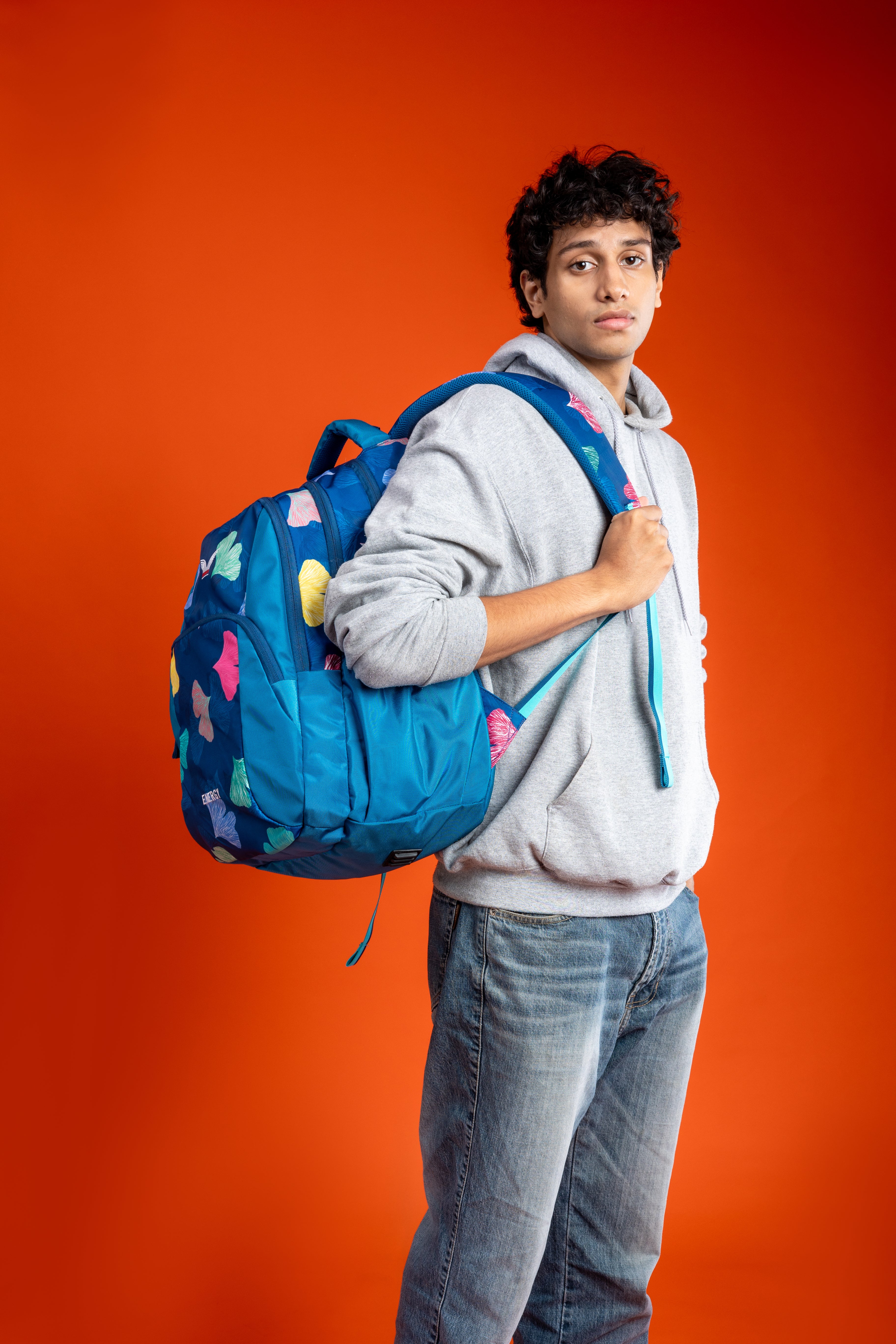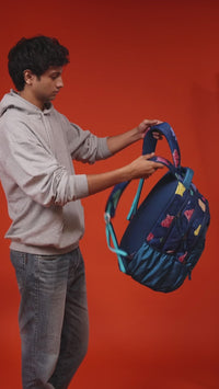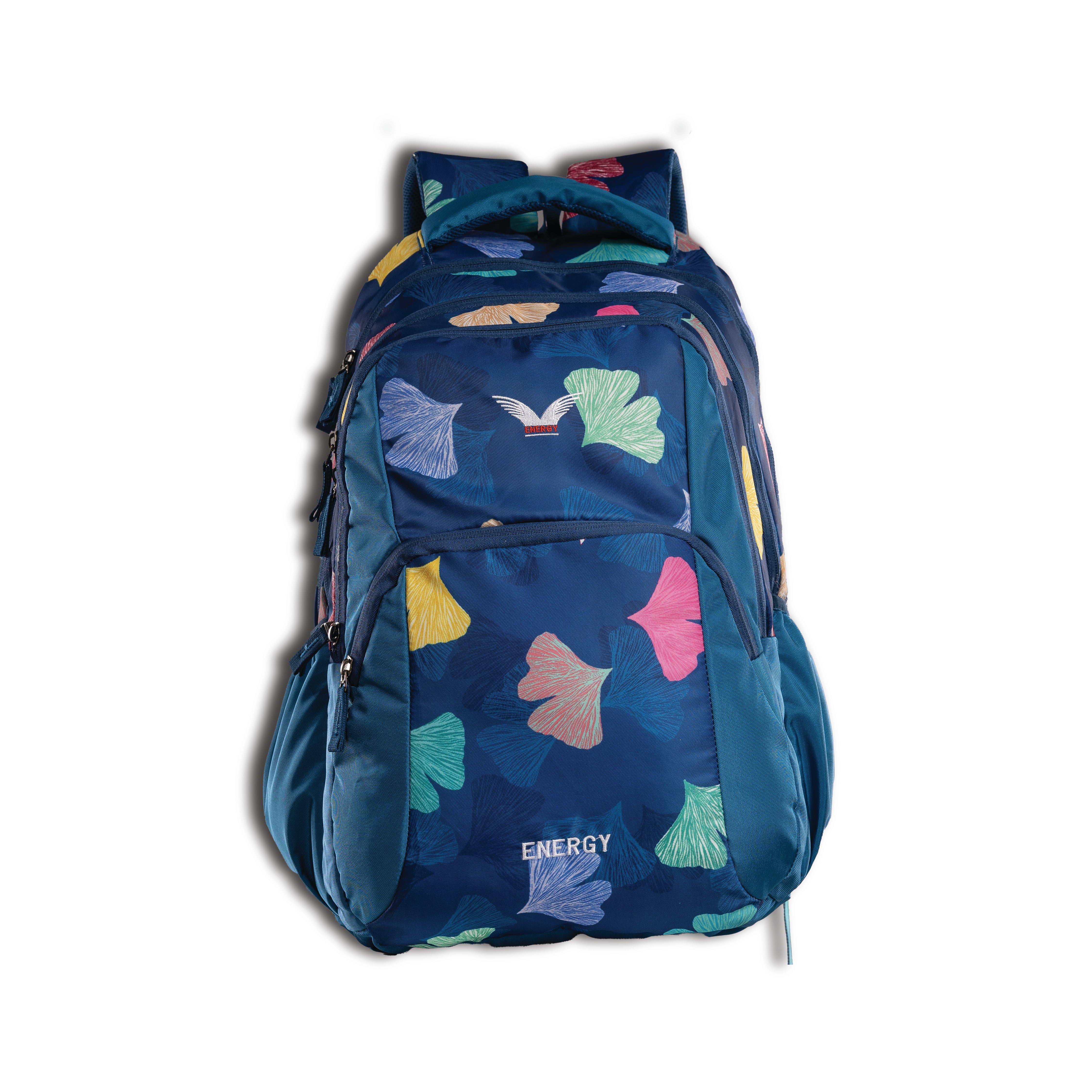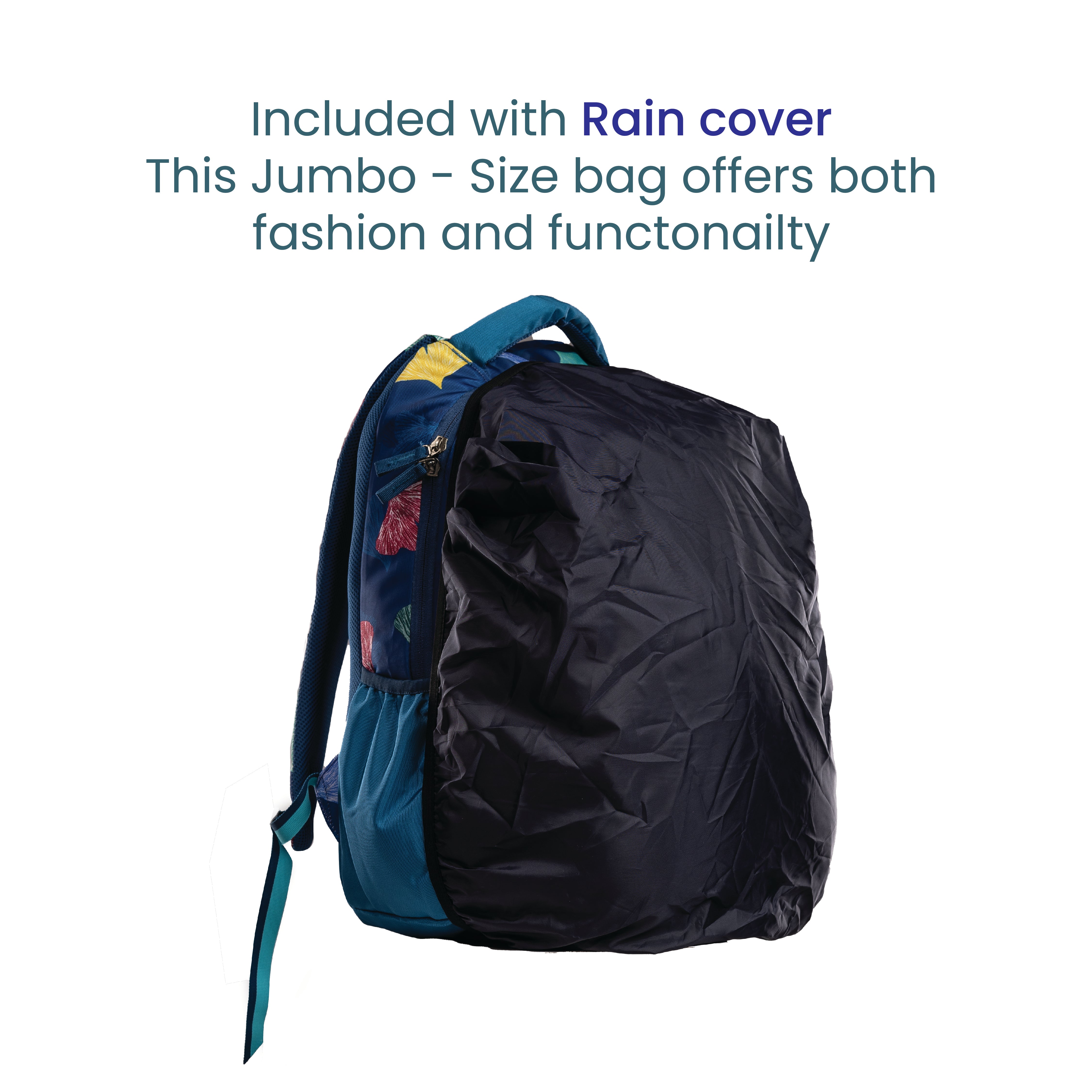 A vibrant and spacious backpack designed for those who love to stand out. The Blue Blossom 2422 features a bold floral pattern on deep blue fabric, making it a stylish companion for school, college or weekend getaways. With multiple compartments, a padded back, and a built in rain cover, this jumbo size bag offers both fashion and functionality.