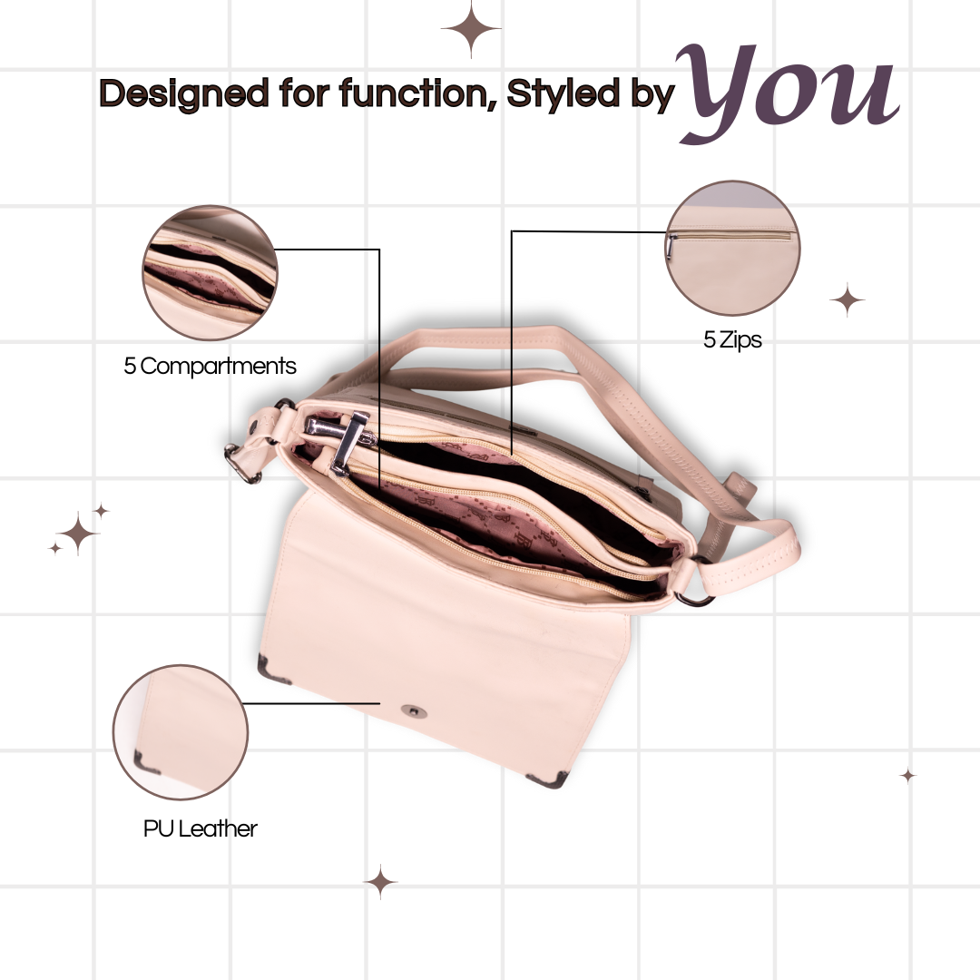 Organized Storage: Offers 2 spacious compartments and 5 smooth zips, making it easy to keep daily essentials secure and accessible.