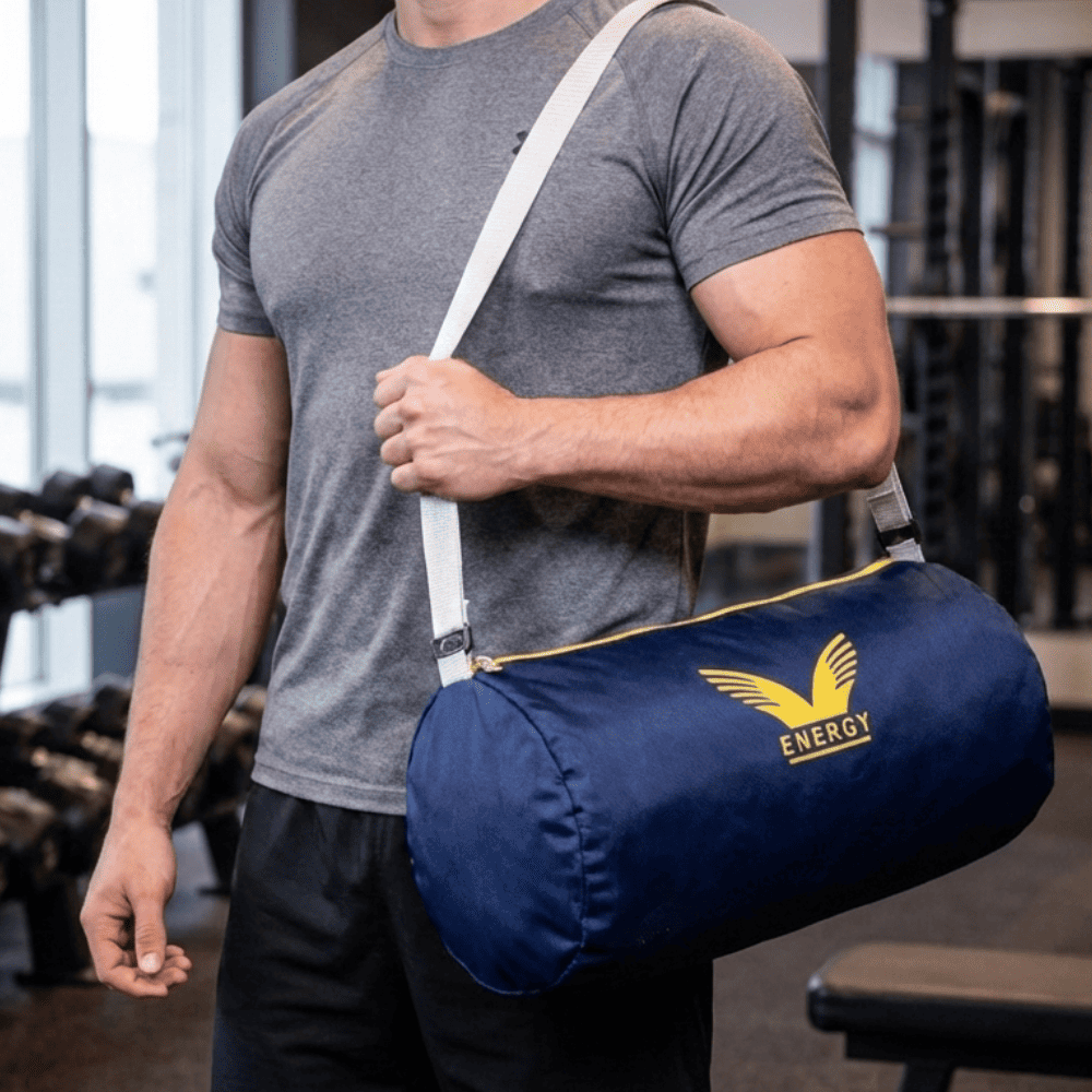 The cylindrical design makes it easy to stow in lockers or car trunks, while the side mesh pocket provides a breathable spot for your damp towel or water bottle. Finished with a durable, adjustable grey shoulder strap, the Energy Apex is ready to move whenever you are.