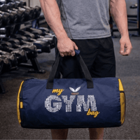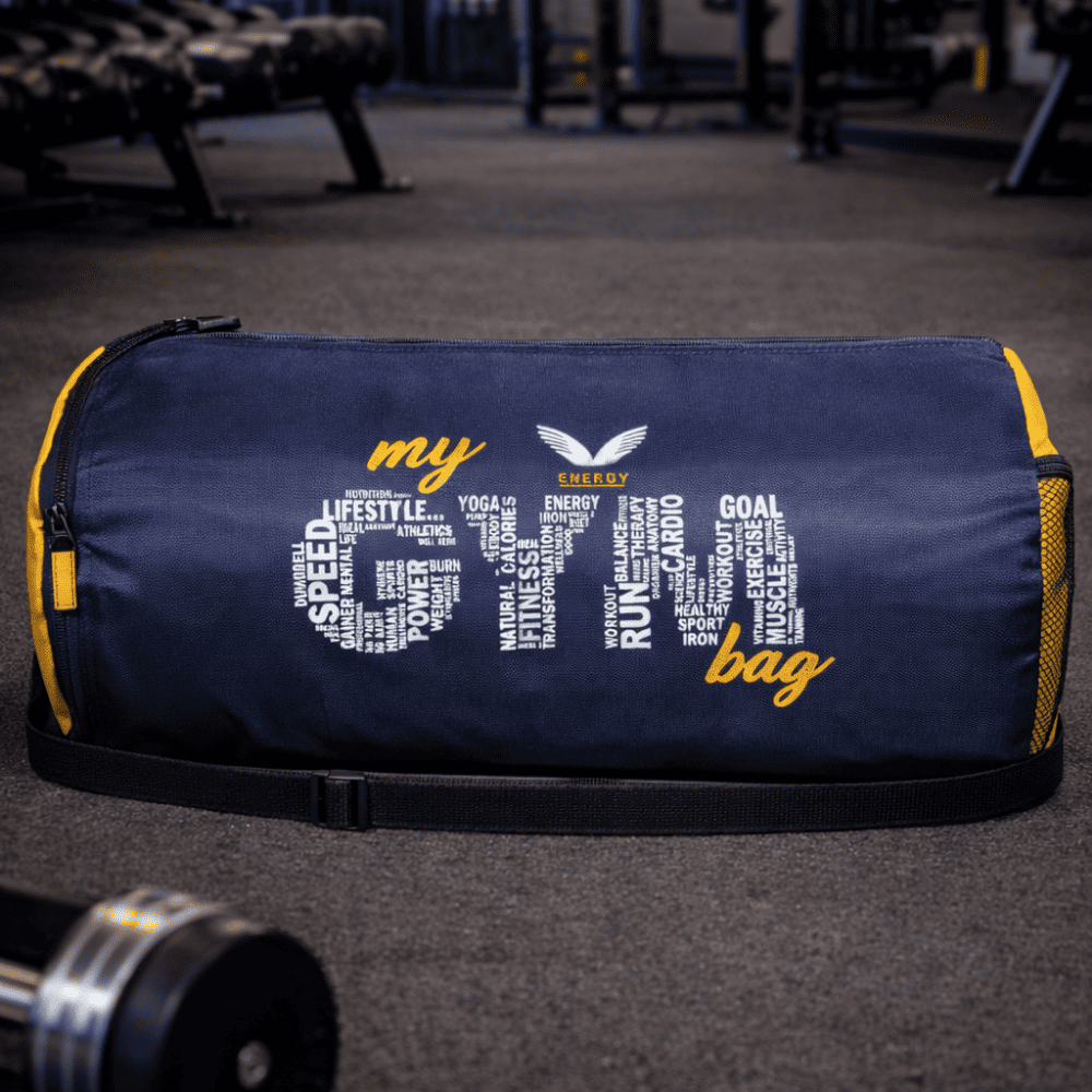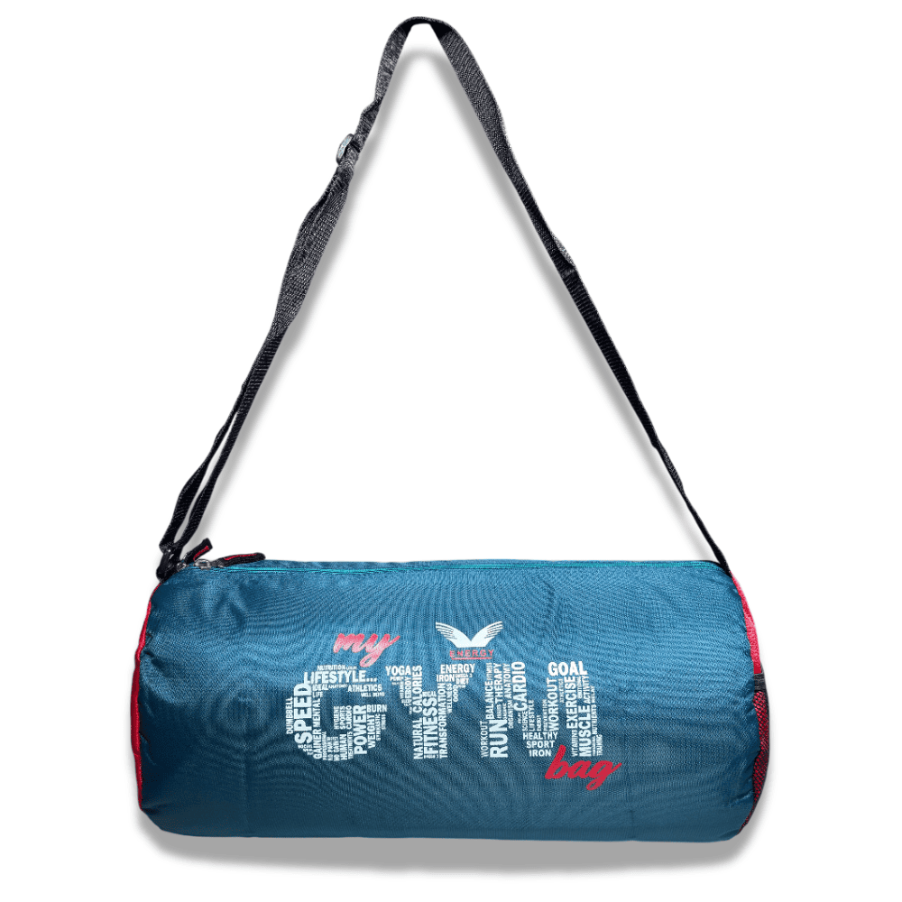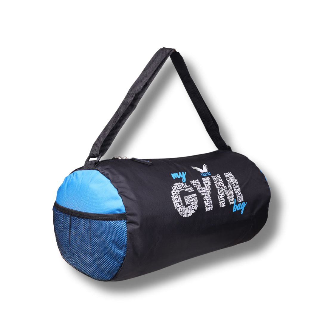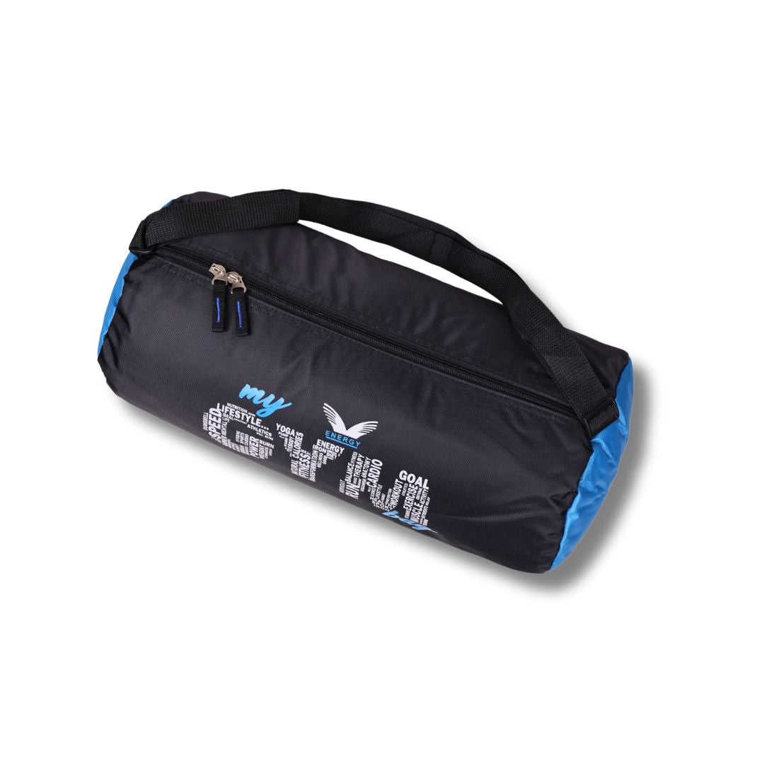 This isn't just a bag; it's a declaration of your lifestyle. The standout feature is the bold "my GYM bag" graphic, where the word "GYM" is artistically filled with motivating words like Power, Cardio, Speed, Goal, and Fitness. Set against a sleek black body with vibrant blue side accents, this bag looks as good as it performs.