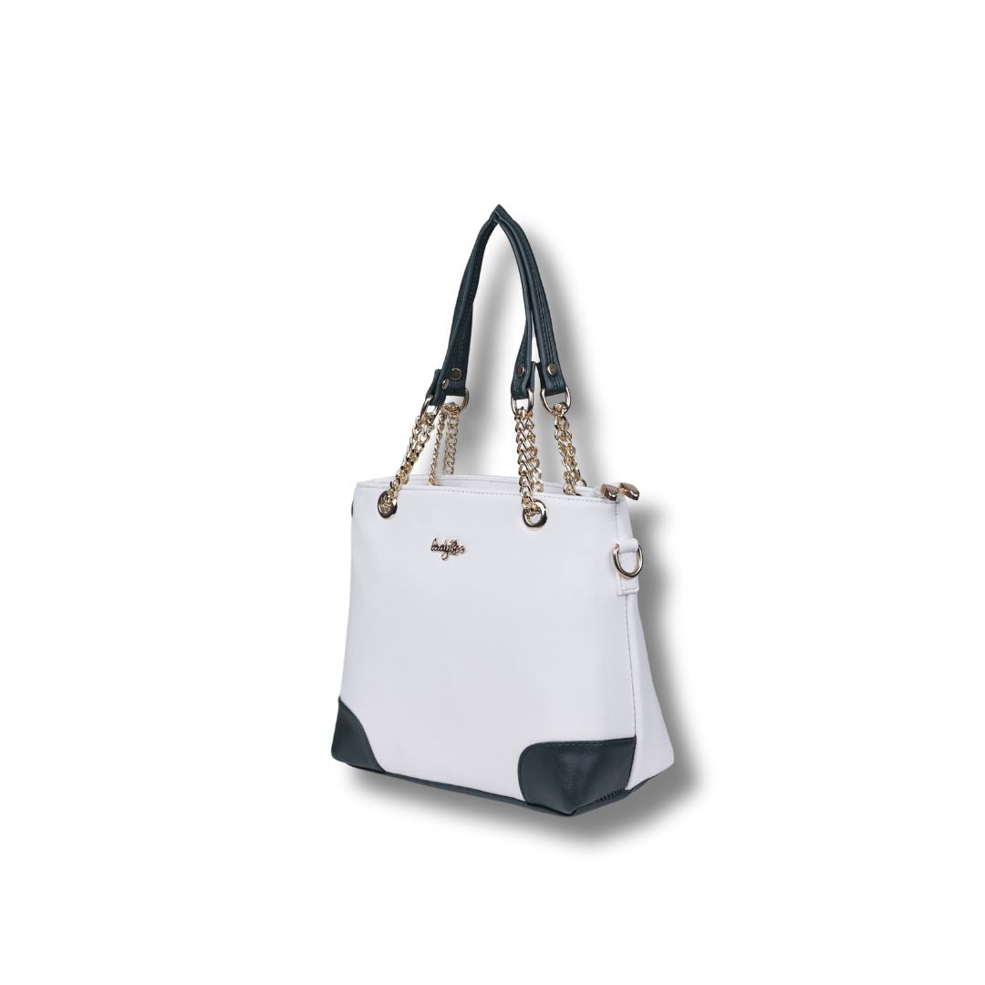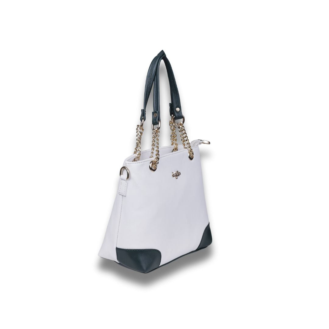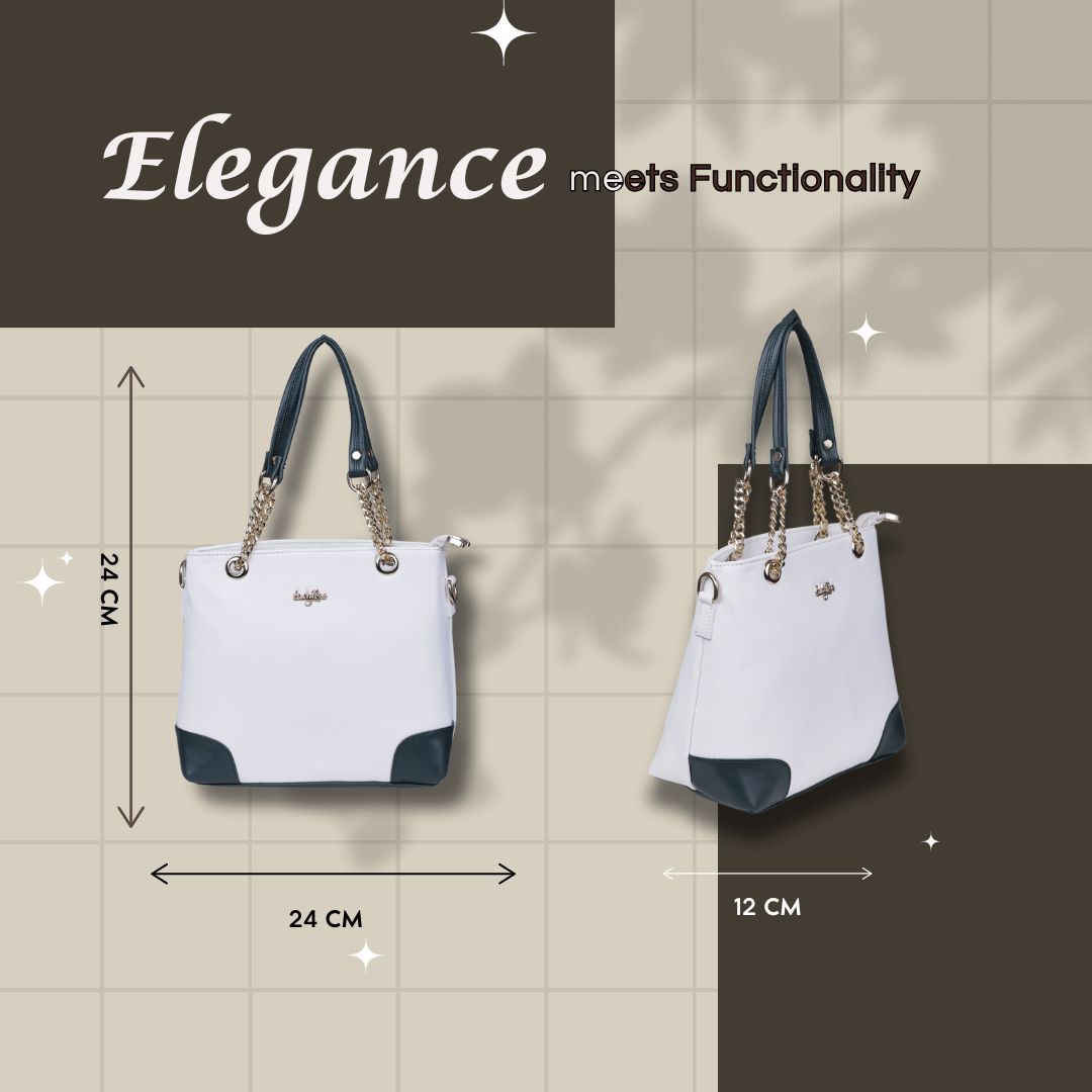 Sophistication in Every Detail. Meet the Ladybee Luxe by Energy—where contemporary design meets everyday practicality. Crafted for those who appreciate the finer details, this handbag features a pristine white silhouette grounded by bold navy accents.