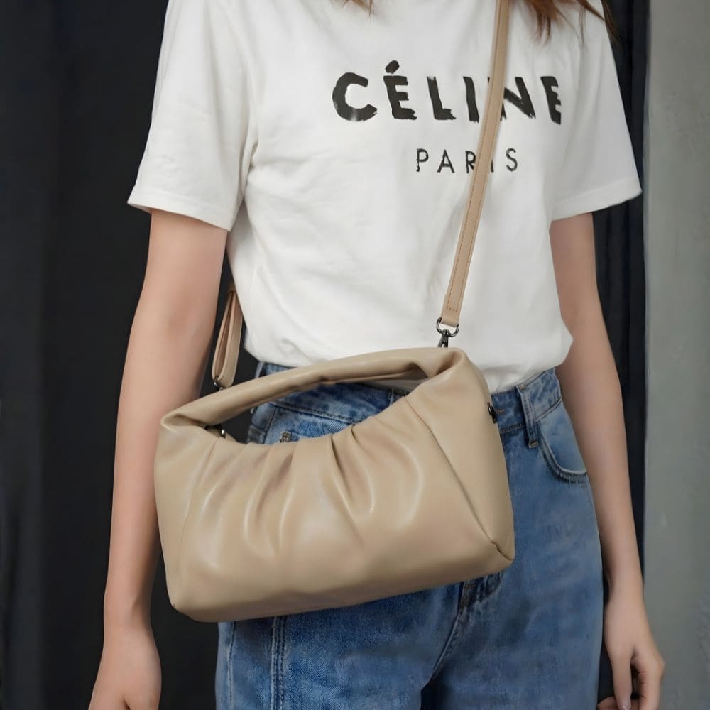 Description: embrace the "soft luxury" trend with the Energy Ladybee Sorra Handbag. This stunning beige shoulder bag is defined by its artistic gathers and soft, cloud-like structure, offering a relaxed yet polished vibe.