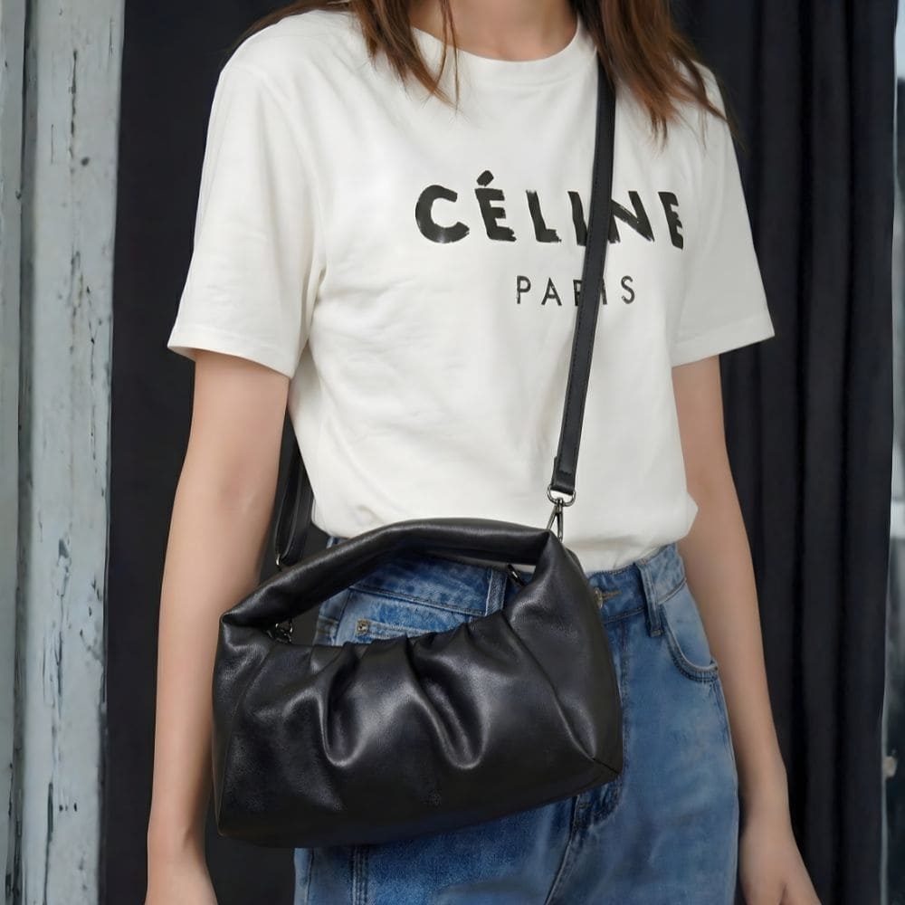 On-Trend Design: Features a chic "cloud" or "dumpling" silhouette with stylish gathered ruching along the body.