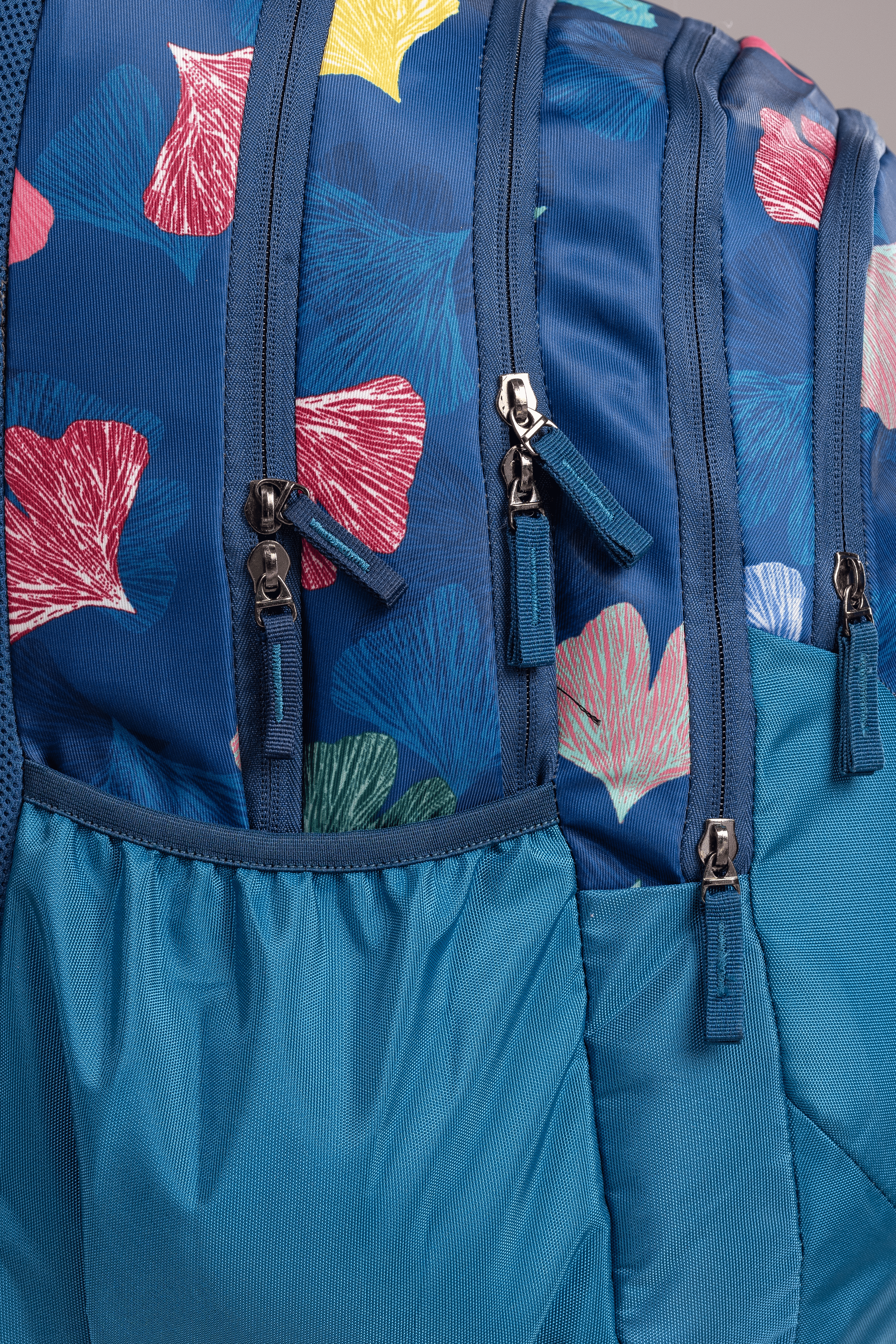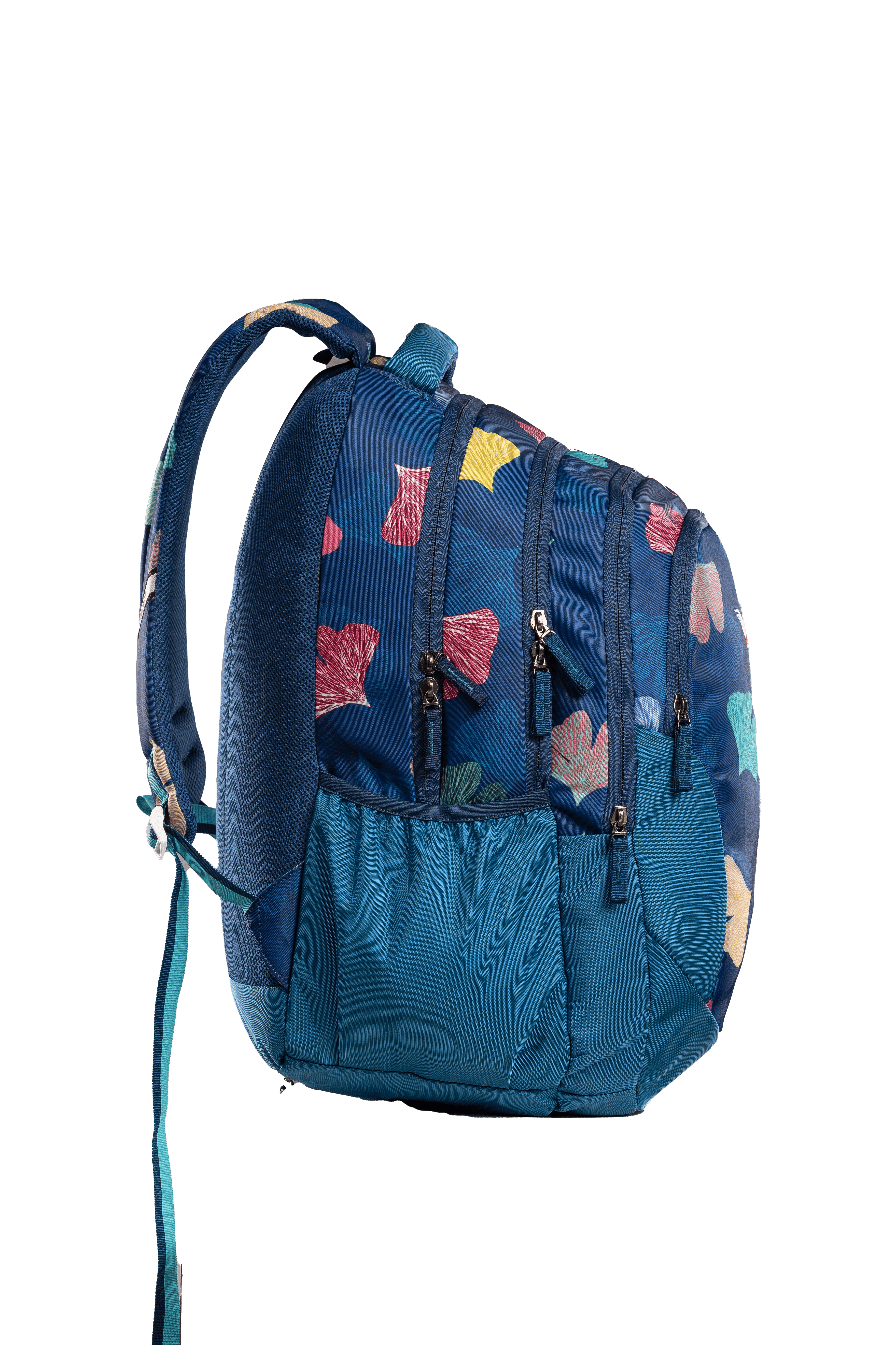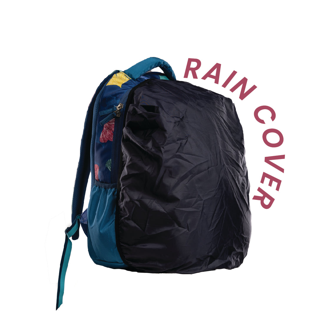 A bold fusion of nature and function, leaf rush brings vibrant leaf patterns to a deep navy base for a refreshing twist. Spacious enough for college days, weekend trips, or school essentials – with a rain cover for all-weather protection.