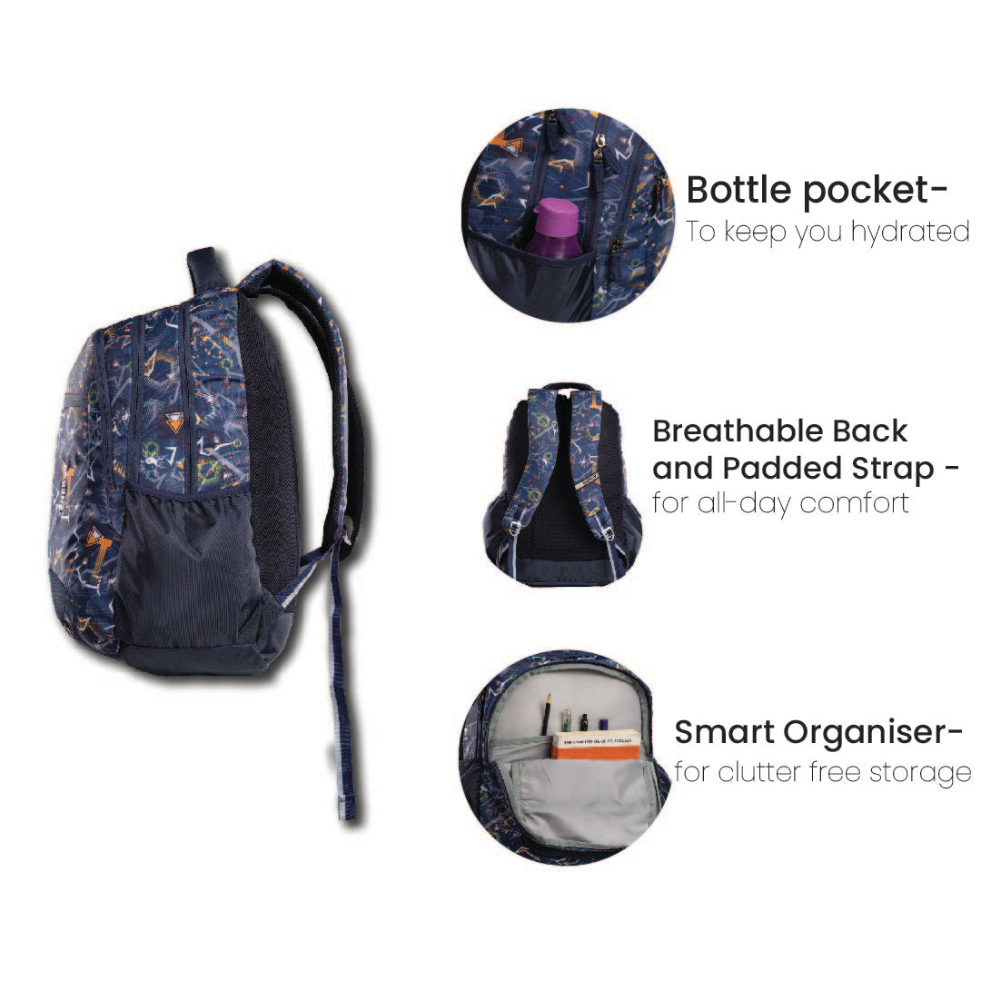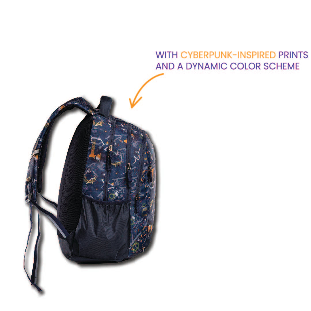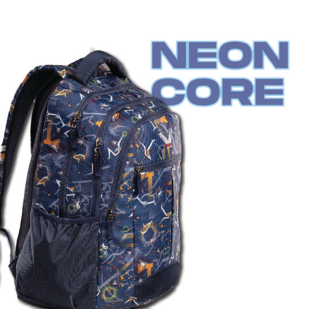 Step into the future with Neon Core 336 with cyberpunk-inspired prints and a dynamic colour scheme, this backpack is built for trendsetters, comes equipped with a rain cover for all weather protection.