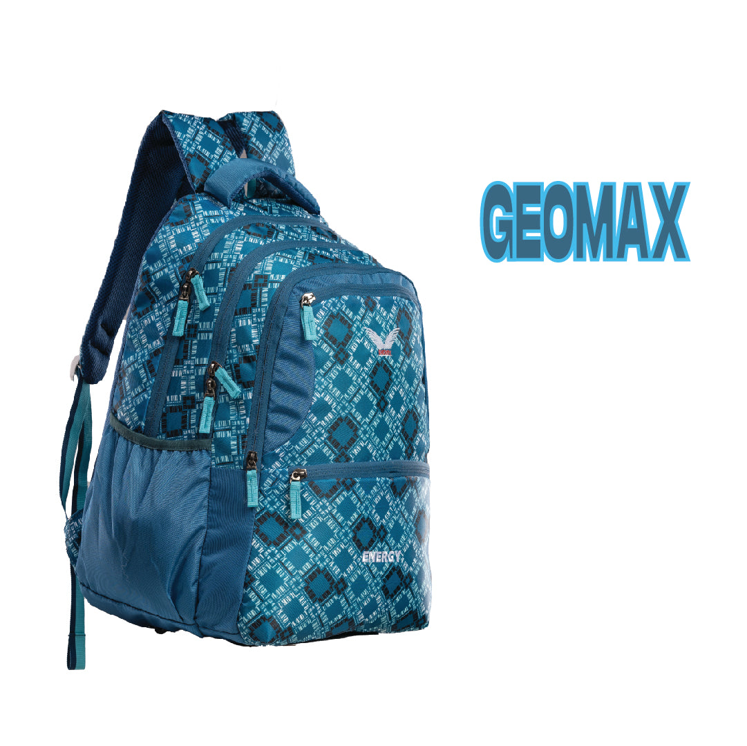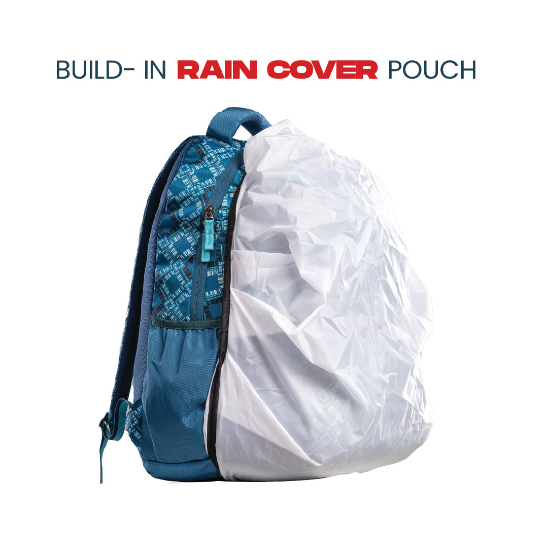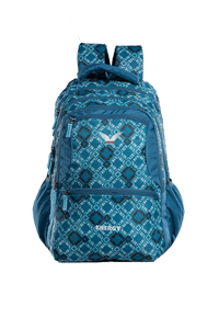 A pattern packed backpack with ample compartments and a rain cover - style and function in perfect balance.
