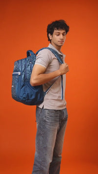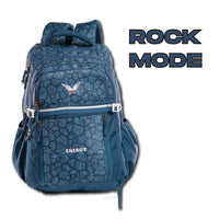 Unleash rugged style with rock mode – a bold, textured backpack designed for those who move with purpose. The striking stone-patterned print pairs with deep blue tones to give this bag a raw, urban edge. Built jumbo-sized with smart compartments, side pockets, and a built-in rain cover, it's perfect for school, travel, or daily hustle.