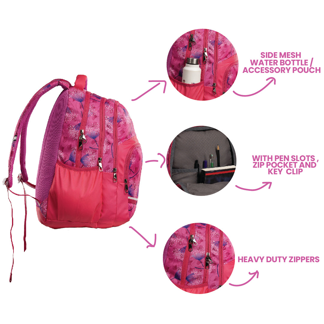 Rosy Trail makes your journey vibrant with jumbo capacity, smart organisation, and a fashionable floral finish.