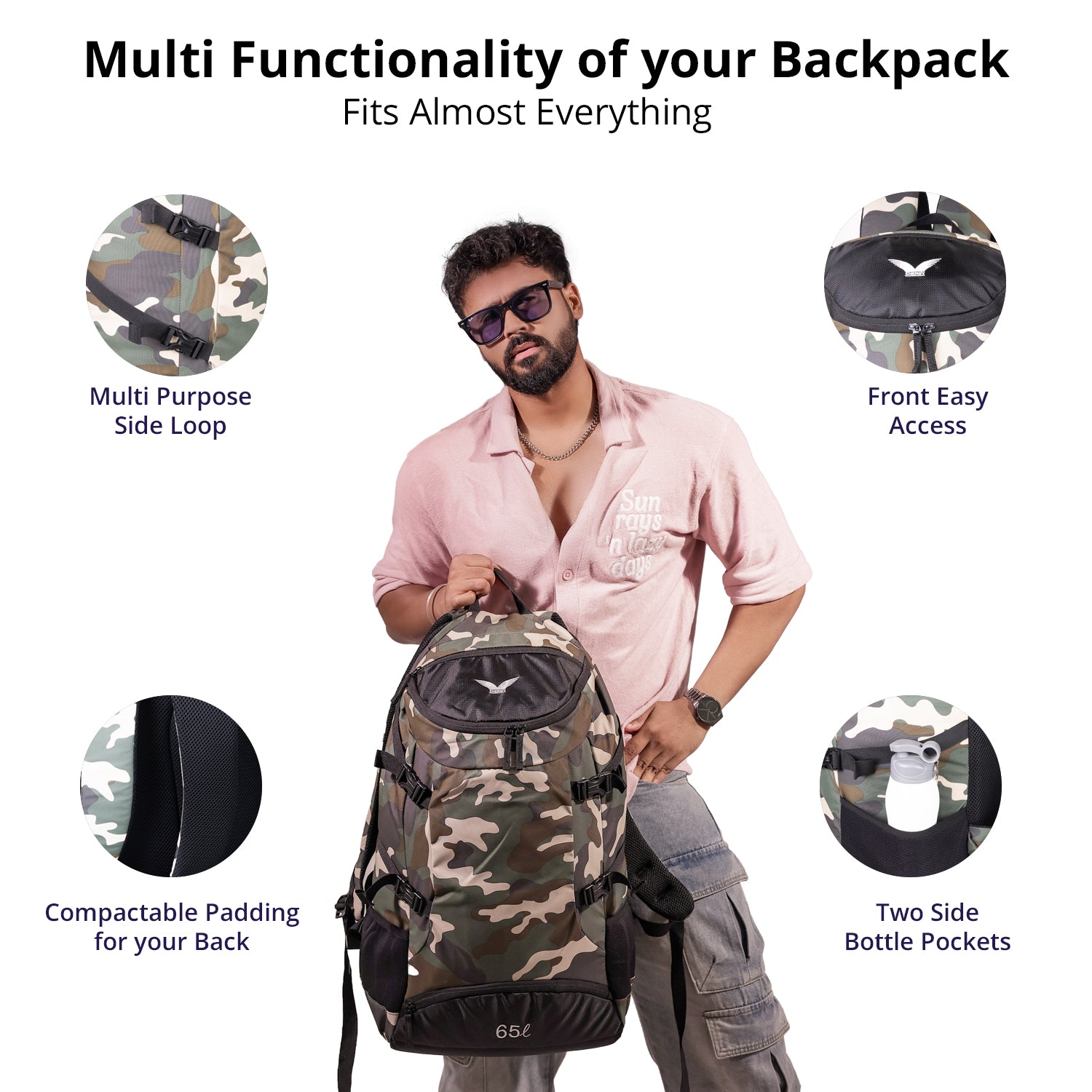 Terra Quest Backpack – 65L (Forest Camouflage Edition)