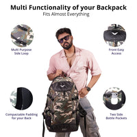 The Terra Quest Backpack – Forest Camouflage Edition is built for explorers who thrive in the wilderness. With its forest-inspired camouflage print blending brown, beige, green, and black tones, this 65L backpack delivers rugged reliability and a natural outdoor look, making it perfect for trekking, camping, and long-distance travel.
