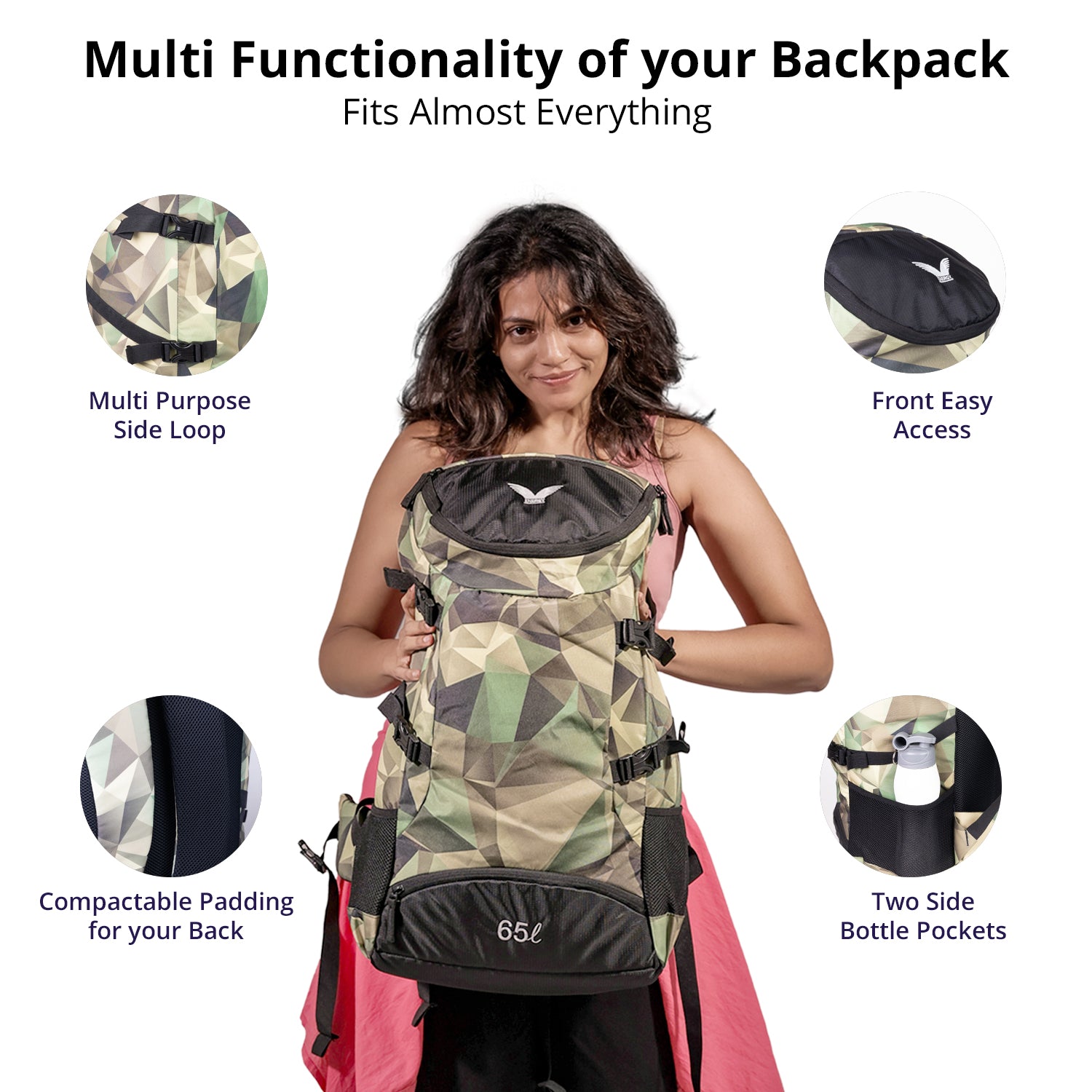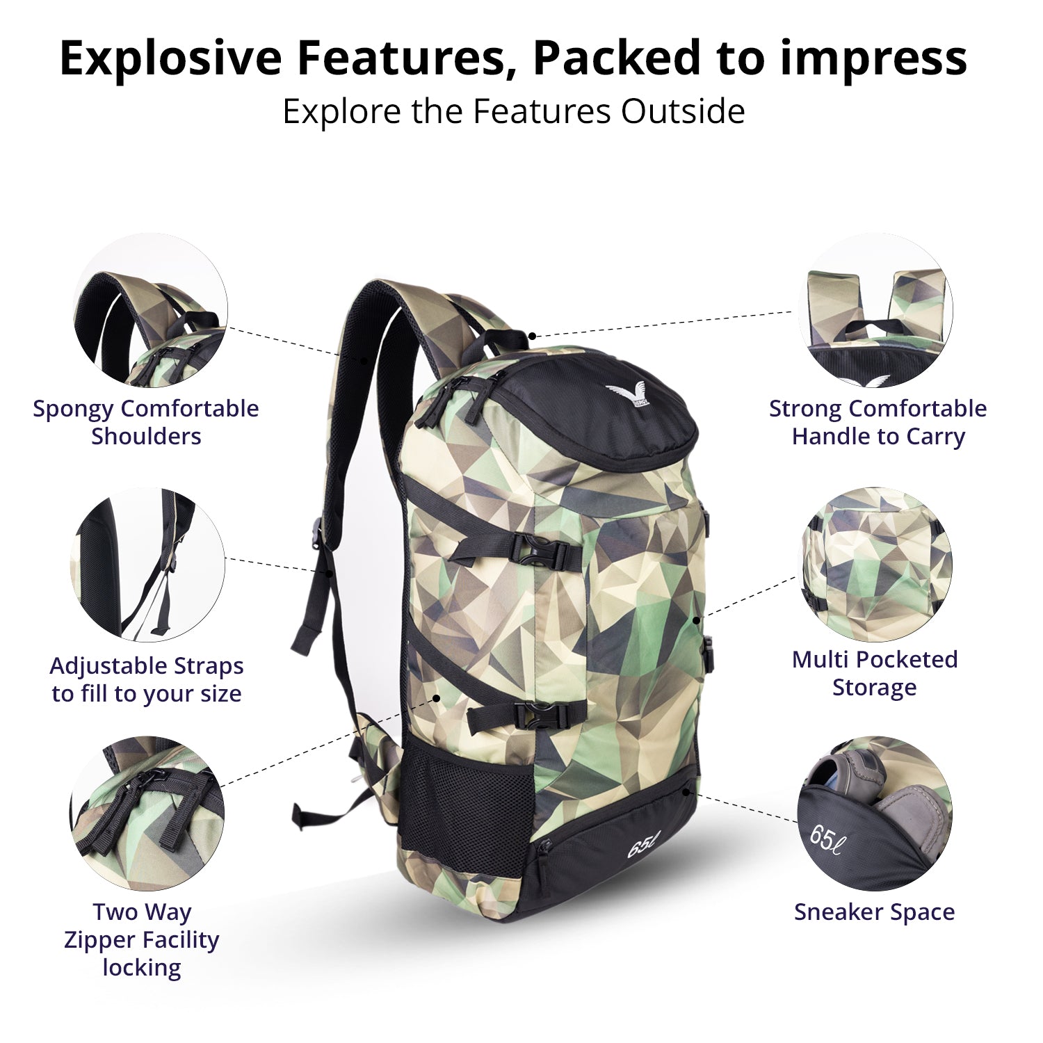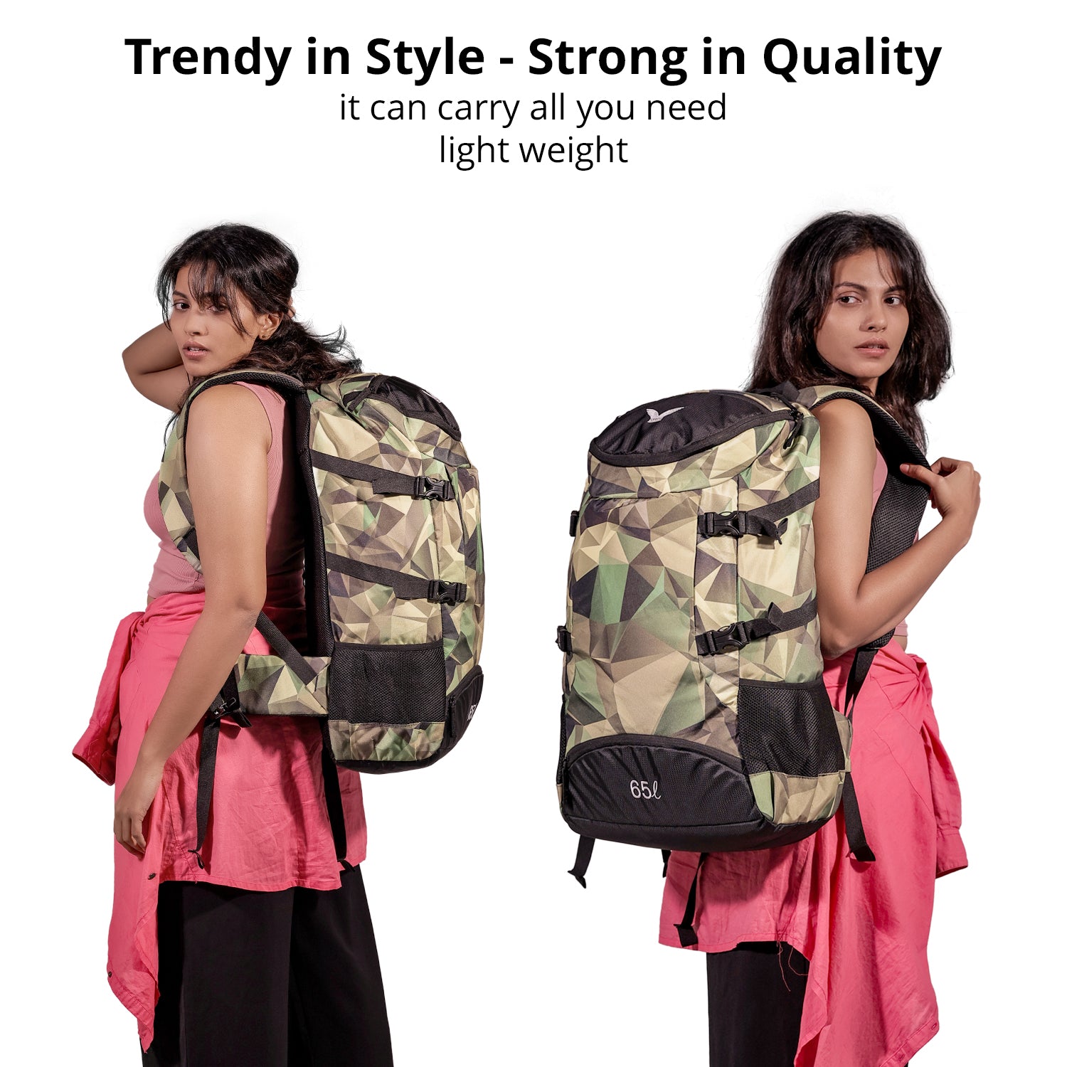 Spacious 65L Storage: Designed for trekking, hiking, camping, and long travel journeys.