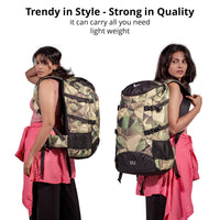 The Terra Quest Backpack – Geometric Camouflage Edition is built for adventurers who want a modern edge to their outdoor gear. Featuring a bold geometric camouflage print in earthy tones of beige, green, brown, and black, this 65L backpack offers both rugged durability and standout style for treks, travels, and outdoor expeditions.