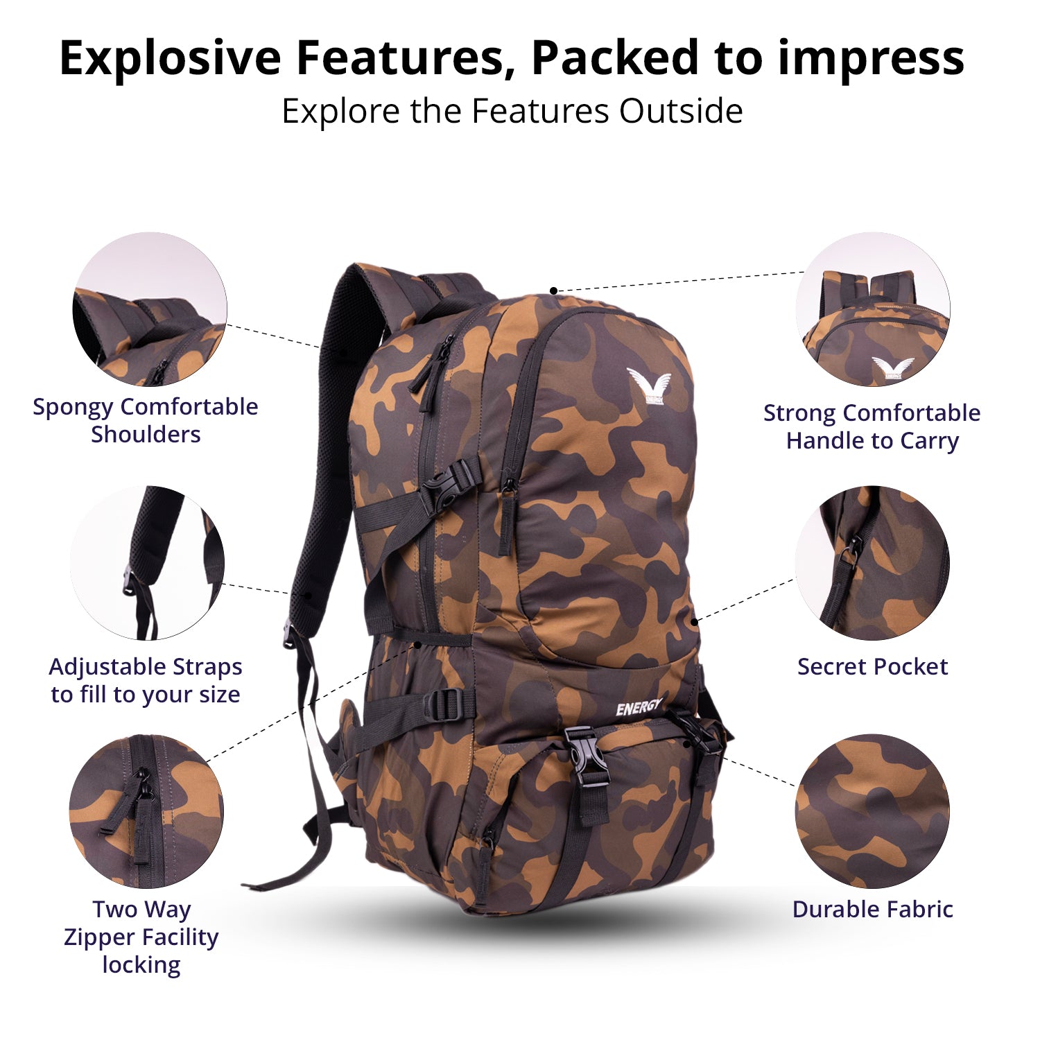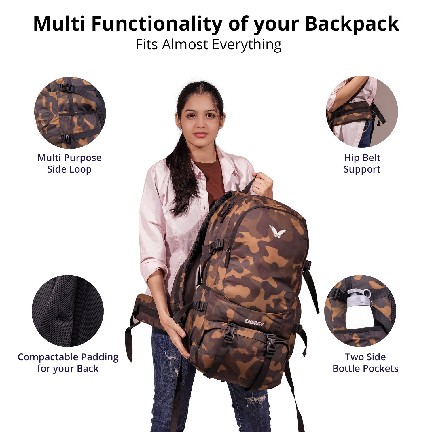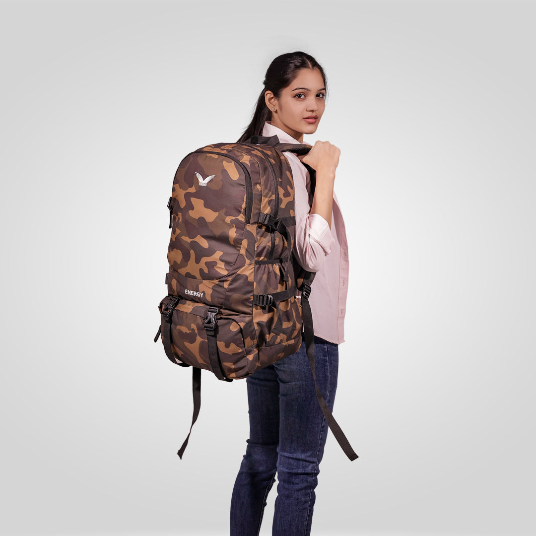 The Trail Blazer Backpack is built for those who love the outdoors, travel, and everyday adventure. Its rugged camouflage design pairs durability with style, making it the ideal choice for students, trekkers, and commuters alike.