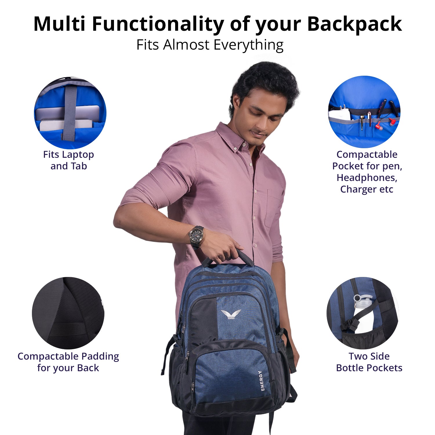 The Energy Bags Adaptix Wave is designed for those who seek a modern, durable, and versatile laptop backpack. With its sleek wave blue body accented in black, it strikes the perfect balance between professional style and everyday practicality, making it ideal for commuting, college, office, travel, or outdoor activities.